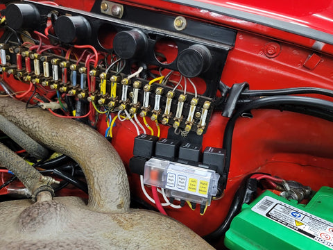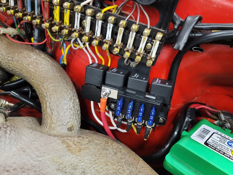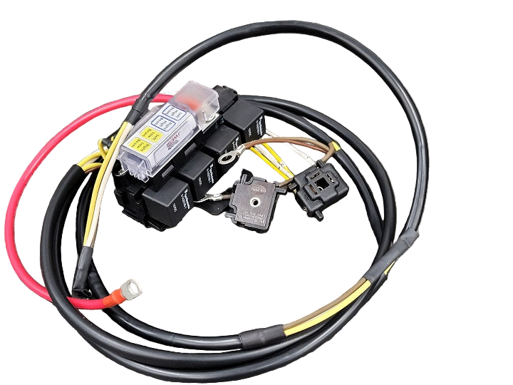 Overkill 4-relay set to provide maximum power to the lights. Includes 4 fuses and heavy gauge wires from the battery all the way to the headlights.