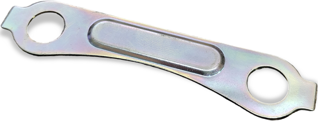 Looking for those NLA lock washers for your caliper bolts? Look no further. This washer attaches under the mount bolt on your Porsche's front or rear strut, with tabs on the end that fold up to ensure that your caliper bolts cannot become loose. Fits all 3" Porsche struts.