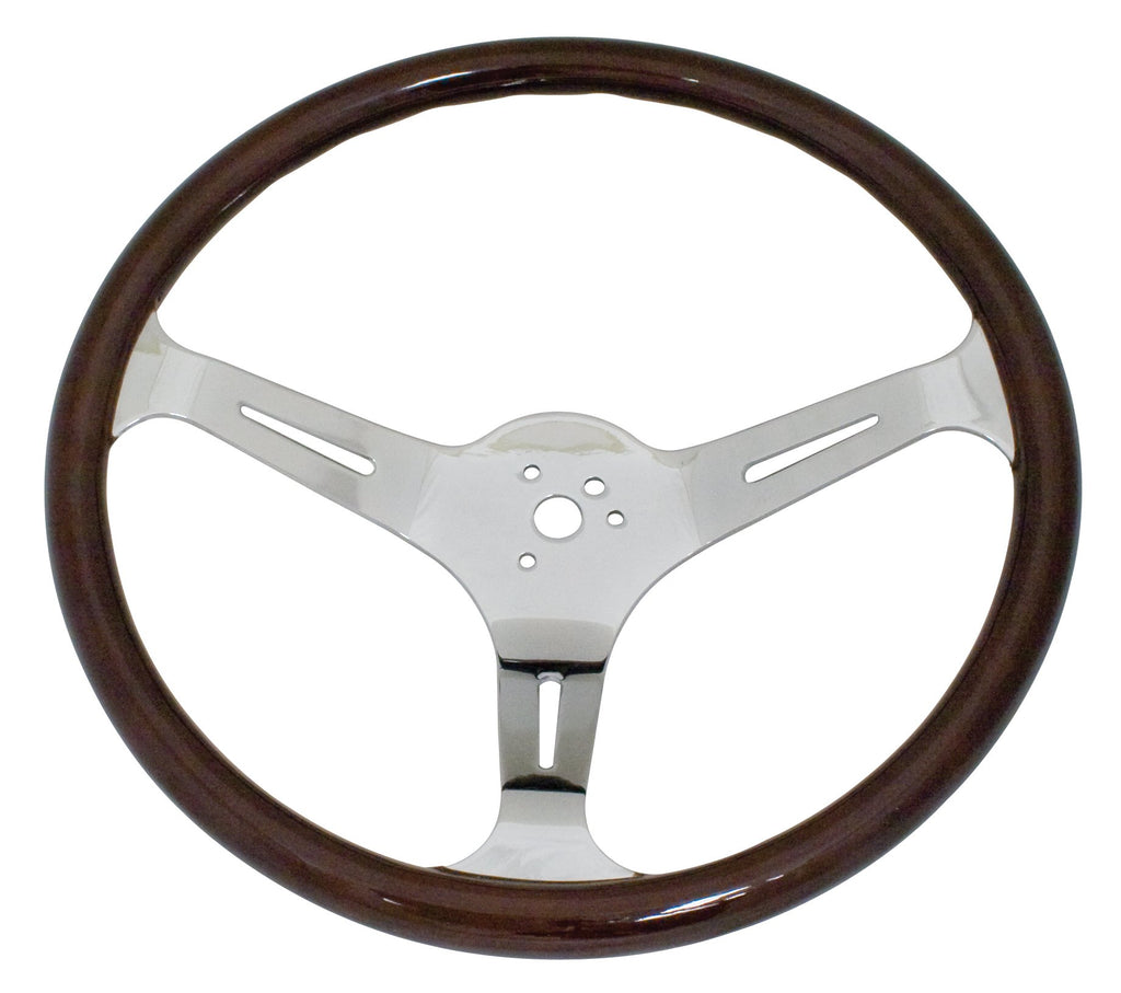 EMPI 380mm/23mm Grip Dark Classic Wood Steering Wheel Only 3" Dish with Classic 3-Bolt Hub Pattern