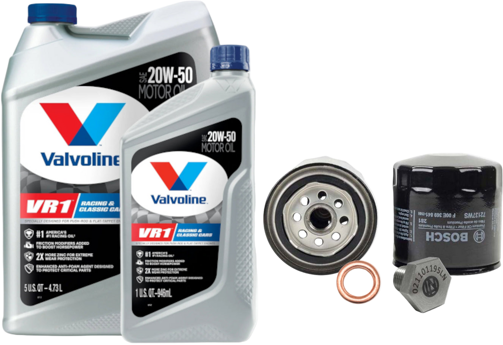 - 6 Quarts of 20W-50 Valvoline VR1 oil (8 Quarts if equipped with an oil cooler)