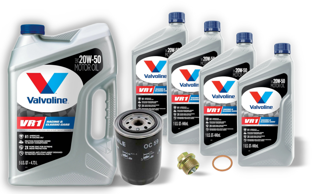 - 9 Quarts of 20W-50 Valvoline VR1 oil (15 Quarts if equipped with an oil cooler)