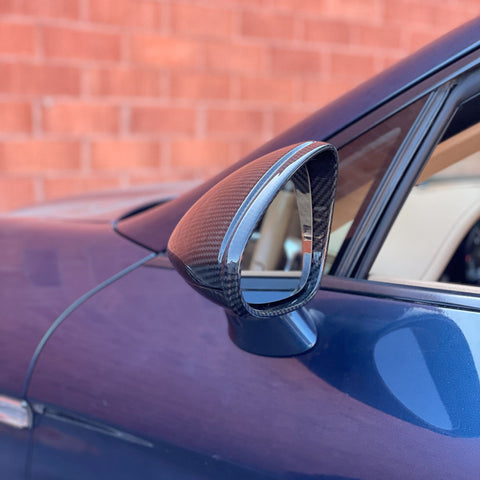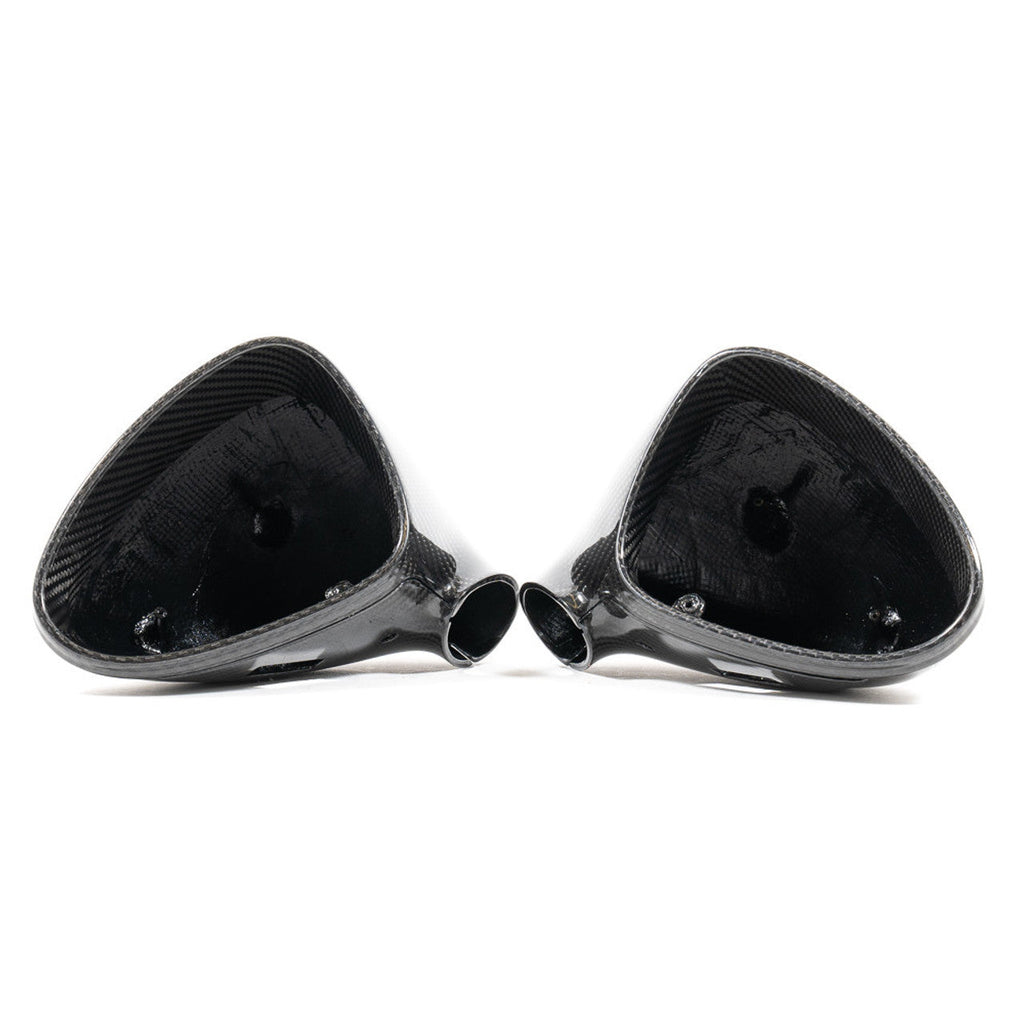 Rennline's carbon fiber mirror shells provide a sleek, modern upgrade to your Porsche’s exterior. Crafted from high-quality carbon fiber using advanced technology, these mirror shells are designed to match the OEM dimensions, ensuring a perfect fit and finish while adding a stylish touch. Simply remove the old plastic mirrors and replace them with ours in minutes, reusing the factory hardware for easy installation.