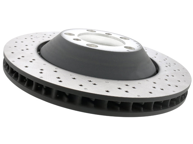 This Sebro brake rotor is built for the front right location on select Porsche 911 GT3 / GT3 RS / 911 R applications. Sebro is an OEM supplier to Porsche, and this rotor matches the factory cross-drilled, internally vented design used on these cars. This rotor is the right-side (passenger side) piece.
